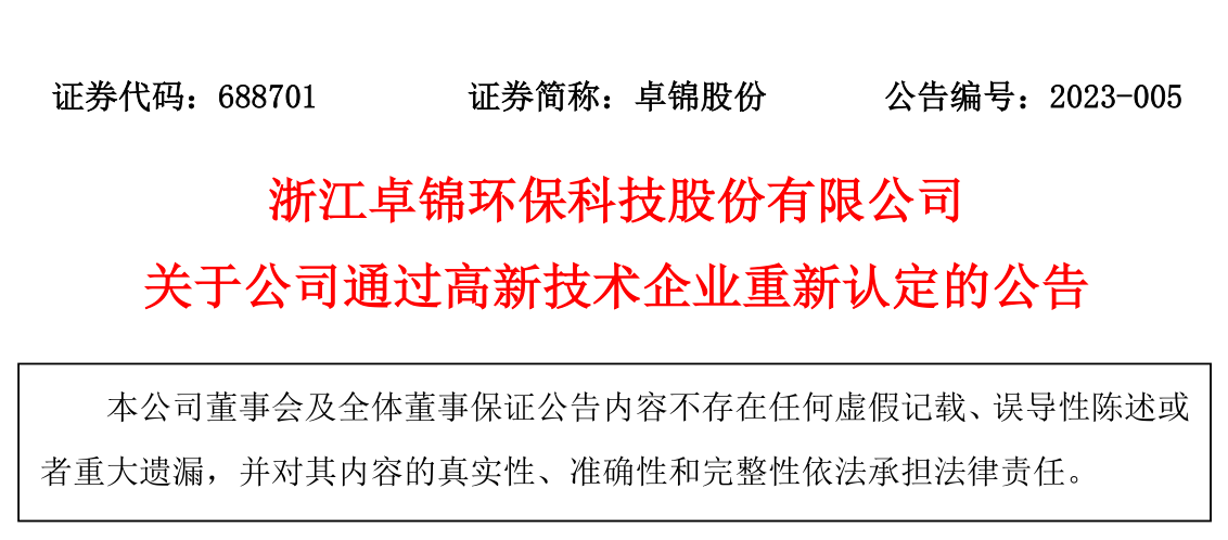 关于公司通过高新技术企业重新认定的公告