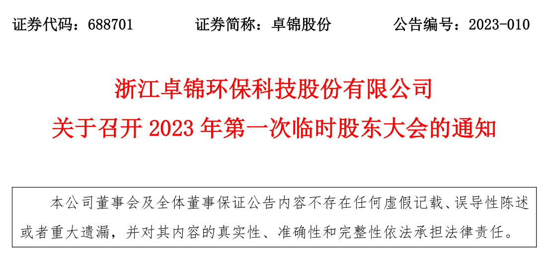关于召开2023年第一次临时股东大会的通知