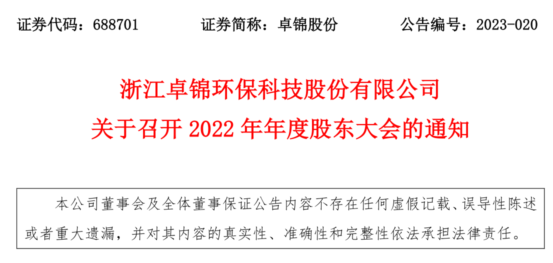 关于召开2022年年度股东大会通知