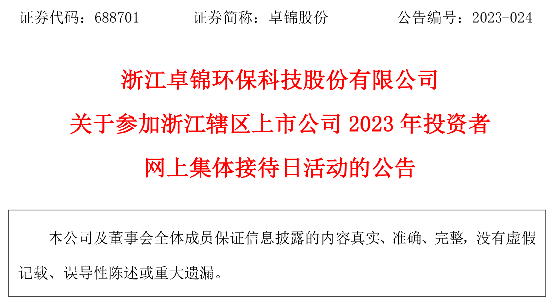 关于参加浙江辖区上市公司2023年投资者网上集体接待日活动的公告