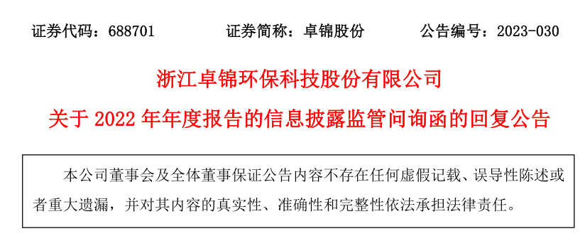 关于2022年年度报告的信息披露监管问询函的回复公告