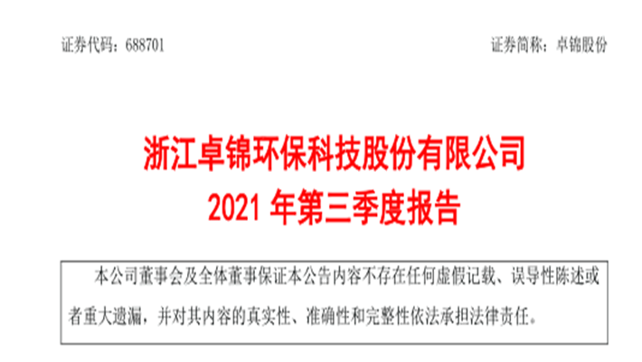 卓锦股份:2021年第三季度报告