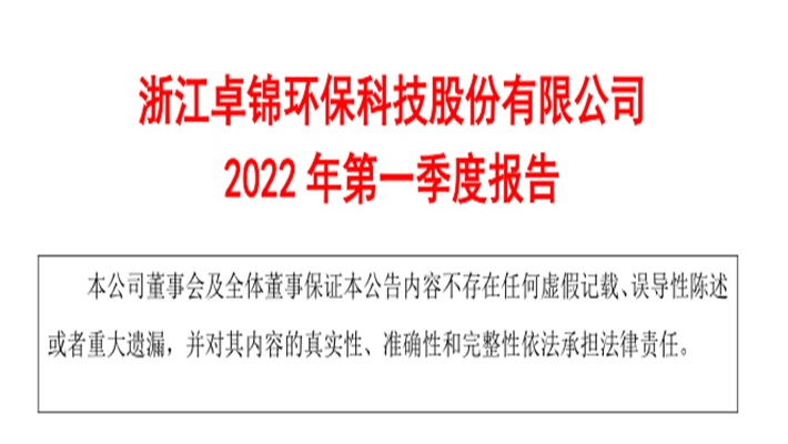浙江卓锦环保科技股份有限公司2022年第一季度报告