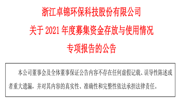 关于2021年度募集资金存放与使用情况专项报告的公告