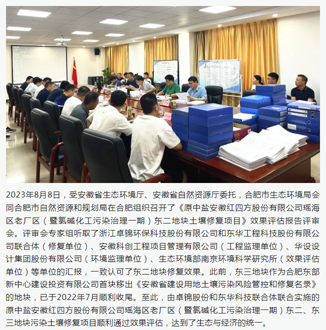 原中盐安徽红四方股份有限公司瑶海区老厂区(暨氯碱化工污染治理一期)东二、东三地块污染土壤修复项目顺利验收