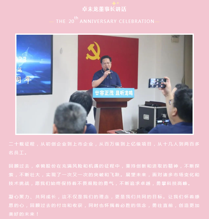 砥砺奋进二十载 凝心聚力开新篇 丨庆祝卓锦股份成立20周年