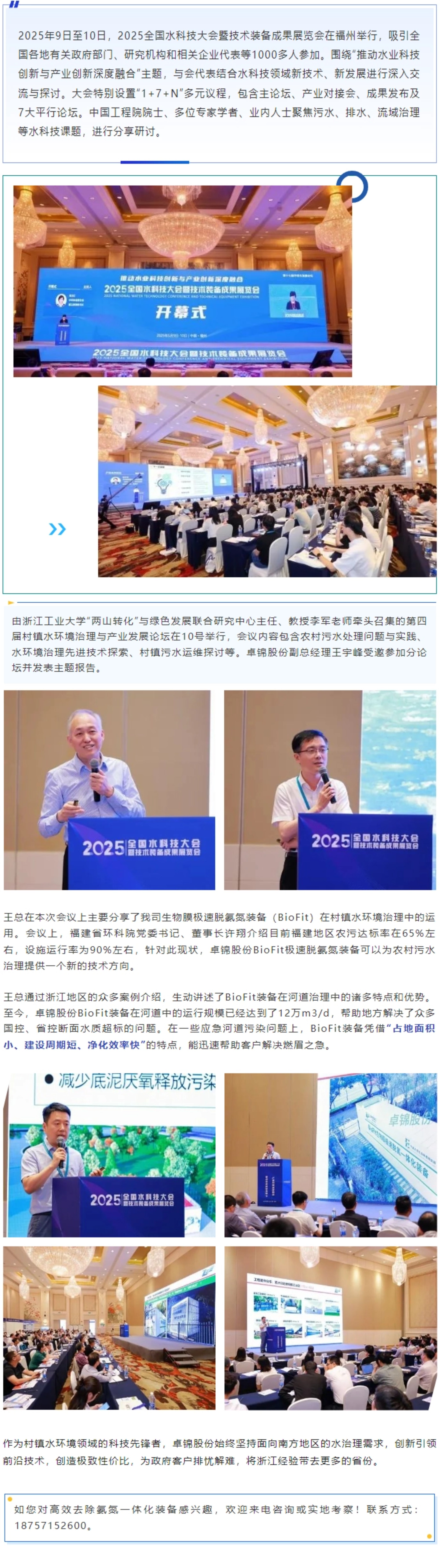 共享浙江成功经验 ‖ 卓锦股份受邀参加第四届村镇水环境治理与产业发展论坛
