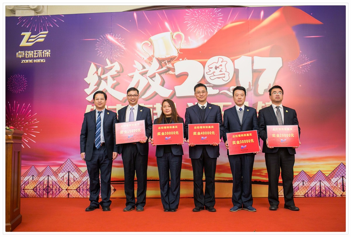 年会的最后由浙江卓锦环保科技股份有限公司董事长卓未龙先生对2016年取得的各项成绩进行盘点,肯定了全体员工的共同努力。卓总指出,2016年是卓锦环保制定大战略、大发展“三年规划”的开局之年,也是挑战与机遇并存的一年,在公司董事会和管理团队的领导下牢牢把握了稳重求进的工作总基调,合力奋进,兢兢业业,签约合同项目金额再创历史新高,圆满完成了既定目标, 顺利实现了公司三年规划的开门红。同时,卓总还明确了公司2017年经营的总体规划和目标。全体员工同心协力,再接再励,圆满完成公司2017年各项公司目标。