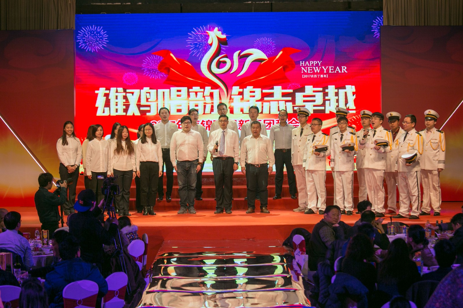随着2016年度工作会议圆满落幕,22日晚,以“雄鸡唱韵 锦志卓越”为主题的2017年新春团拜会在金色大厅拉开帷幕,卓锦环保的全体员工及家属、嘉宾朋友等近200人出席了本次盛会。