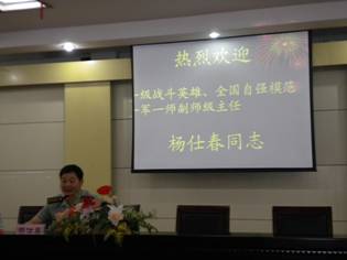 员工培训是我公司员工福利的重要组成部分。为了增强员工主动学习的积极性与创造性,营造一个自我学习的机遇与氛围,本着“不断学习、不断进步”的原则,我公司定于2011年5月30日于朝晖街道文化活动中心开展第二次的员工读书活动,激发员工求知欲望,通过学习达到自我增值的目的,提高员工的专业的素养和职业道德,将专业知识更好地运用到平常的工作中。本次活动我公司邀请了一级战斗英雄、全国自强模范,一军一师副师级主任杨仕春同志为大家作报告,分享他这一路走来的心路历程。驻浙某师医院三所主治医师杨仕春,福建松溪人,1961年2月出生,1978年12月入伍,上校军衔。1982年4月入党,大专学历,历任排长、副连长、连长等职。1985年,杨仕春在边境作战中英勇负伤失去双腿,被评为特等伤残。1995年5月任军医。近三十来,杨仕春在不同岗位上,始终不忘对党和人民的忠诚誓言,以进取心直面困难,以平常心对待得失,以感恩心回报部队和社会,在不同岗位上尽心尽责,努力工作,先后被集团军、师表彰为“学雷锋、学‘硬骨头六连’”、“学习成才先进个人”和“优秀共产党员”,荣立二等战功一次,2007年6月荣立一等功一次。
