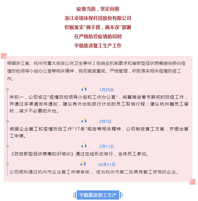 “两手抓,两不误”,卓锦环保平稳推进复工生产