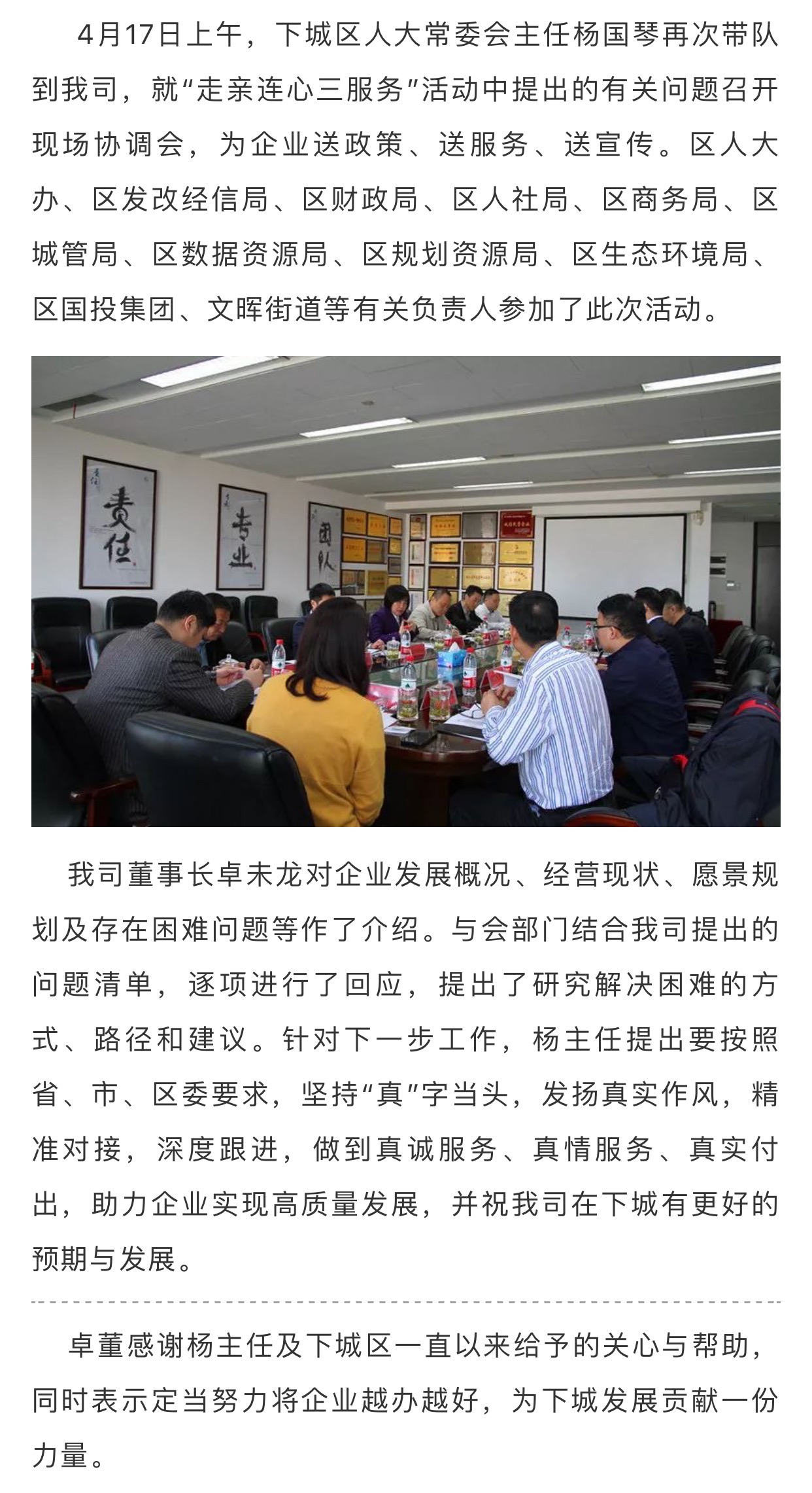 下城区人大常委会主任杨国琴一行前来卓锦环保开展“走亲连心三服务”活动