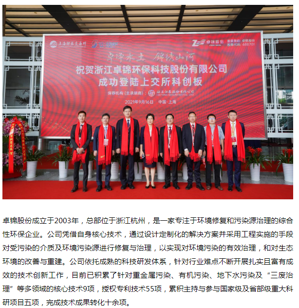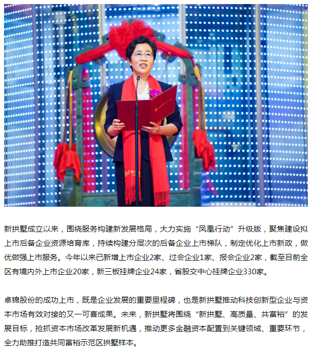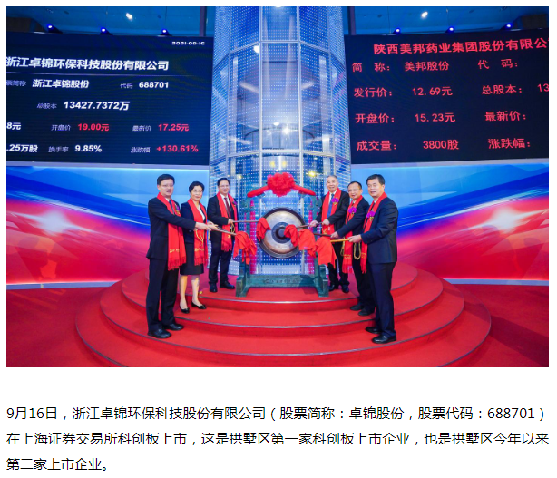 卓锦环保,今日鸣锣上市!拱墅迎来第20家上市企业