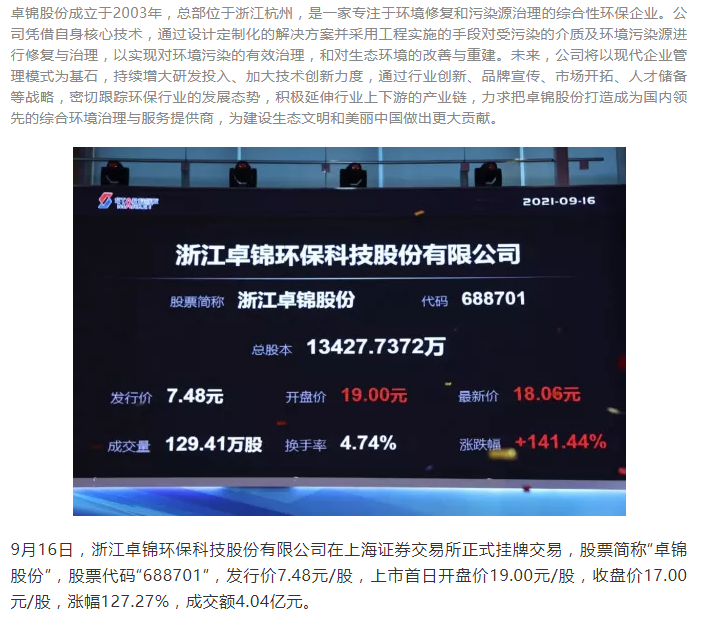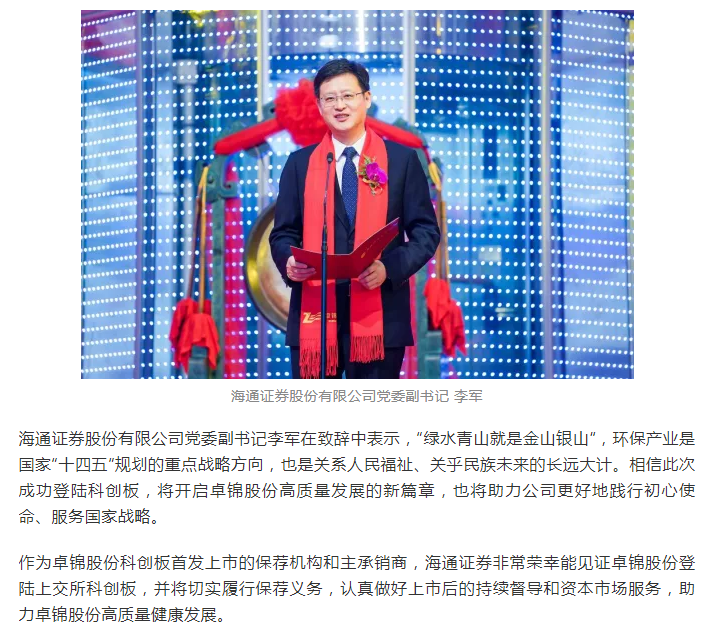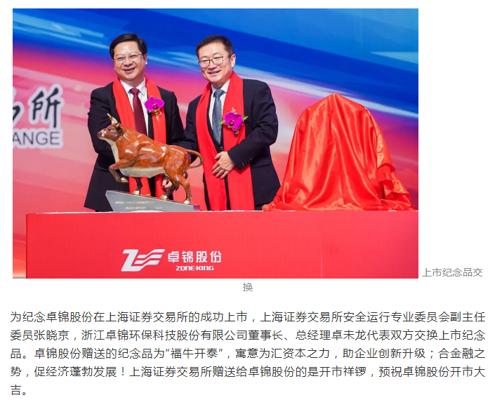 致力于环境保护、惠及人类社会,卓锦股份成功登陆上交所科创板