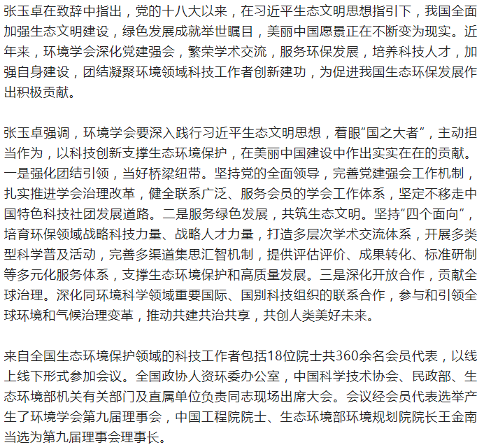 中国环境科学学会第九次全国会员代表大会召开