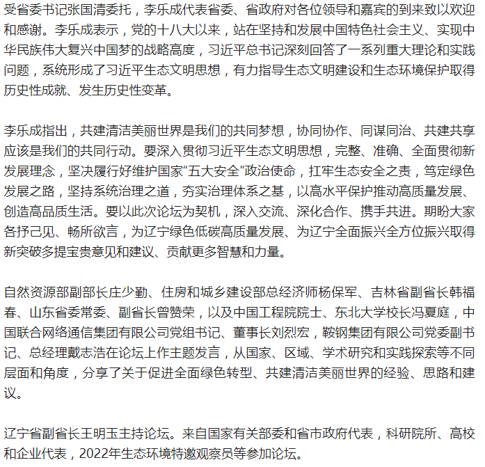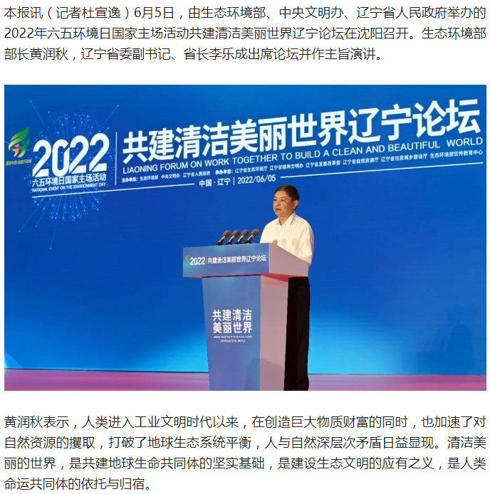 共建清洁美丽世界辽宁论坛在沈阳举办