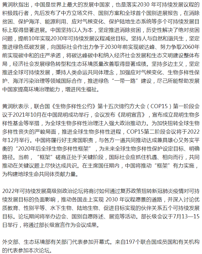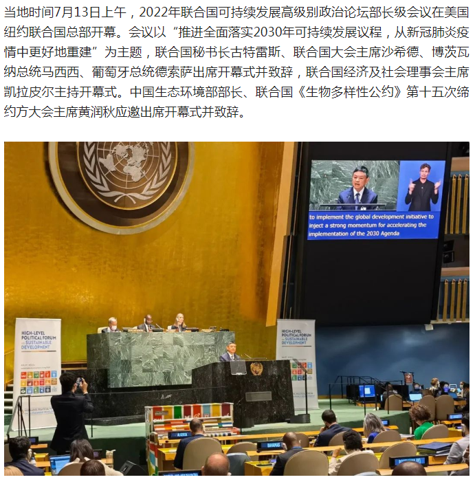 生态环境部部长黄润秋出席2022年联合国可持续发展高级别政治论坛部长级会议开幕式